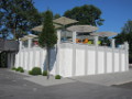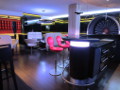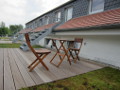Desweiteren wurden alte Garagenbestände abgerissen und durch ein neues Stuhllager (245m²) errichtet. Die Struktur wurde der Sichtbetonwänden dem Bestand angepasst. Das Dach wurde als Dachterrasse/Sonnendeck ausgebildet. Die weitgespannten Glas(Windfang)Brüstungselementen geben einen freien, ungehinderten Blick auf die Hainer Burg und Weiher. Die Dachterrasse wurde mit einer großen Barbecue-Theke und Grill, Sonnenschirme mit LED gesteuerter Beleuchtungstechnik ausgestattet.