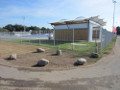 Das Funktionsgebäude, zuvor als Containeranlage geplant, wurde in Holzbauweise errichtet.