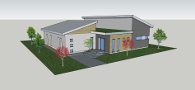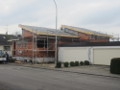 EG Erweiterung und Barriere freie Zugänge. 3 verschiedenlagige Pultdächer und ein teilendes Flach-/Gründach.