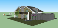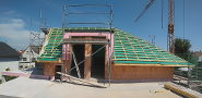 - Dachkonstruktion mit Fassadenverschneidungen und doppel-Giebel zum Garten