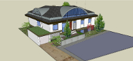 Dachrand verschleiert tatsächliche Größe des entstandenen Innenraumes, lässt dem Bungalow seine dezent flaches Erscheinen.